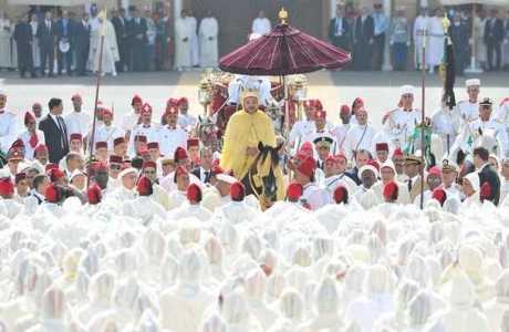 وجرت العادة كل سنة مع حلول ذكرى عيد العرش فى 30 يوليو، أن يتجمع مئات النواب والمسئولين وكبار الموظفين والأعيان قرب القصر الملكى، مرتدين الجلابيب المغربية البيضاء والطرابيش الحمراء فى انتظار خروج الملك ممتطيا صهوة جواد أسود وأحد "العبيد" يحمل مظلة كبيرة تقيه الشمس، وعبيد آخرون يحيطون به.